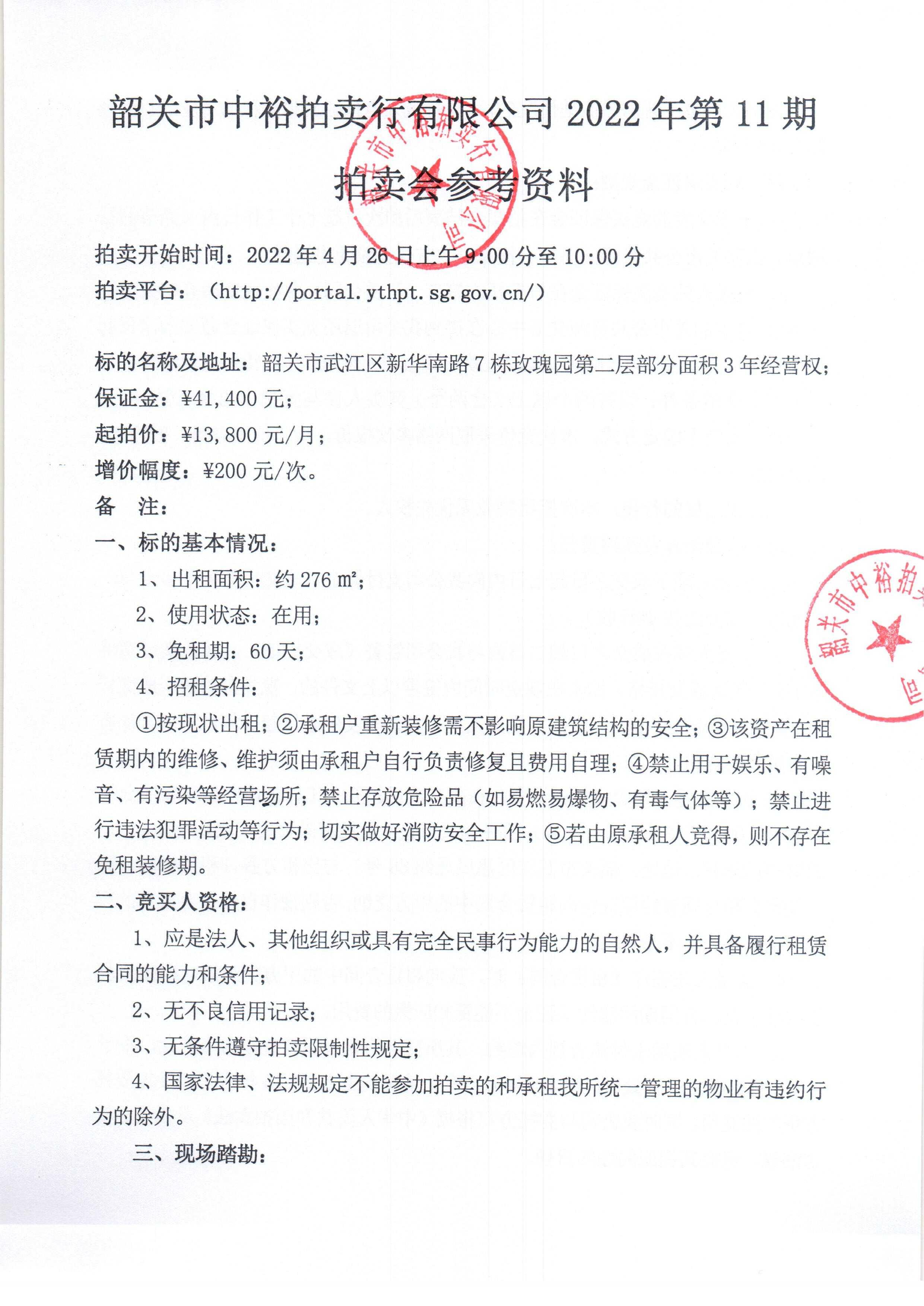 韶關市中裕拍賣行有限公司2022年第11期拍賣公告(項目編號:CQ20220130)